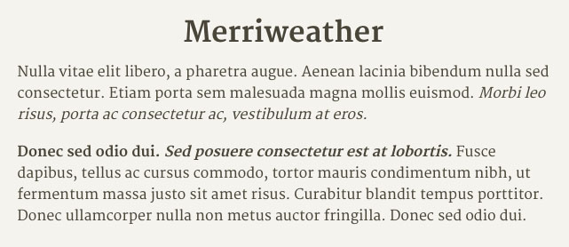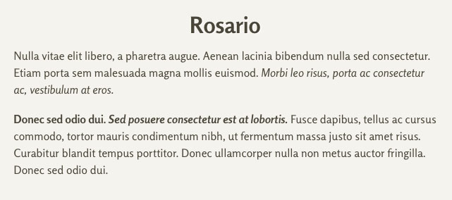 To meet my standards of being “acceptable” for body copy the fonts had to have at least a few different weights and ideally an italic and bold italic style. As almost any website with body copy will have common bold and italicized text this was my first priority. While browsers will simulate italic, bold and the combination of the two it’s never ideal.