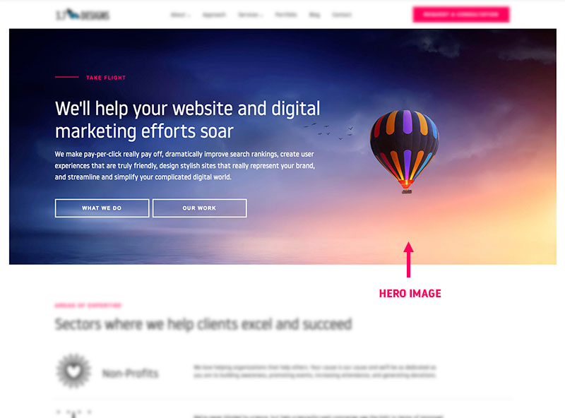 An overwhelming majority of websites incorporate the “hero image” design pattern. This is where a large, visually impactful image is used at the top of the page along with key messaging to emotionally engage the target audience.