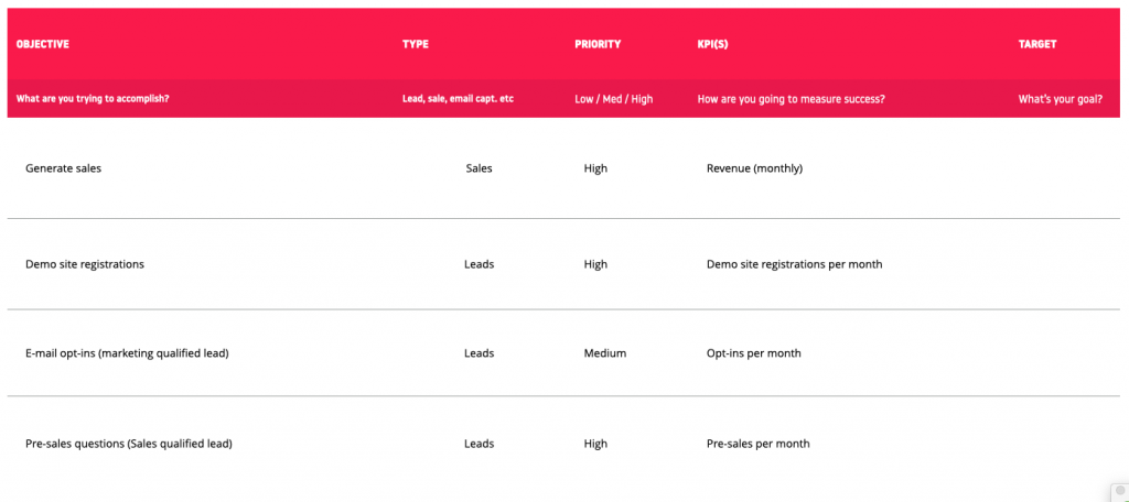 - Increasing website leads by 10% in the next six months