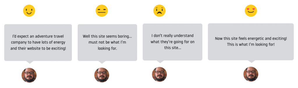 In more detail, users land on your site with a range of expectations. With a financial advisor, they might expect visual language that’s serious, organized, and clean. With educational toy manufactures the expectation might be bright, energetic, and playful.