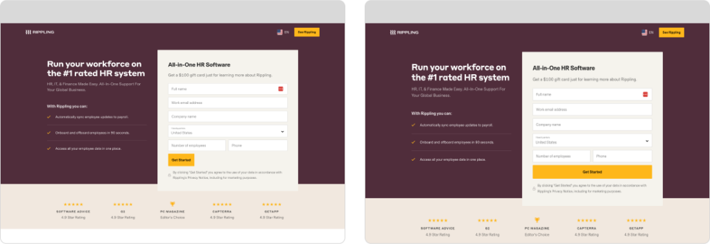 Make sure your most compelling messages are immediately visible, along with a way to convert, such as a visible form or CTA button.