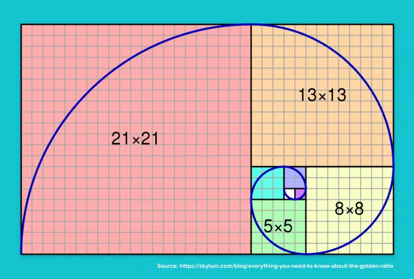 The golden ratio is another design law that influences the emotional aspect of a design. It’s often confused with the rule of thirds, but they are subtly different. The golden ratio looks at what proportions are naturally most visually appealing. This ratio has been used in design, architecture, and engineering for centuries. It has even been tied to what features we find most attractive in people (facial and body types).