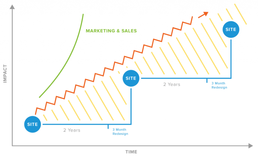 With Growth Driven Design you’re continually evolving and improving your website and as a result, the opposite happens– performance increases over time. You also negate the need for expensive and time consuming redesigns every three years.