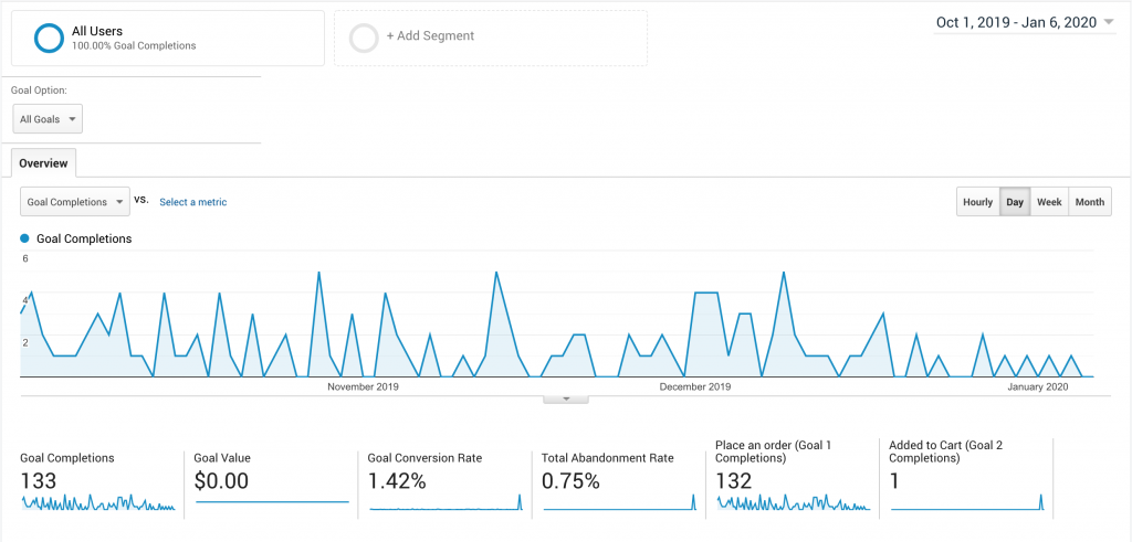Goal tracking allows you to tell Google Analytics when something desirable happens. Someone fills out a contact form, subscribes to your newsletter, makes a purchase, etc…